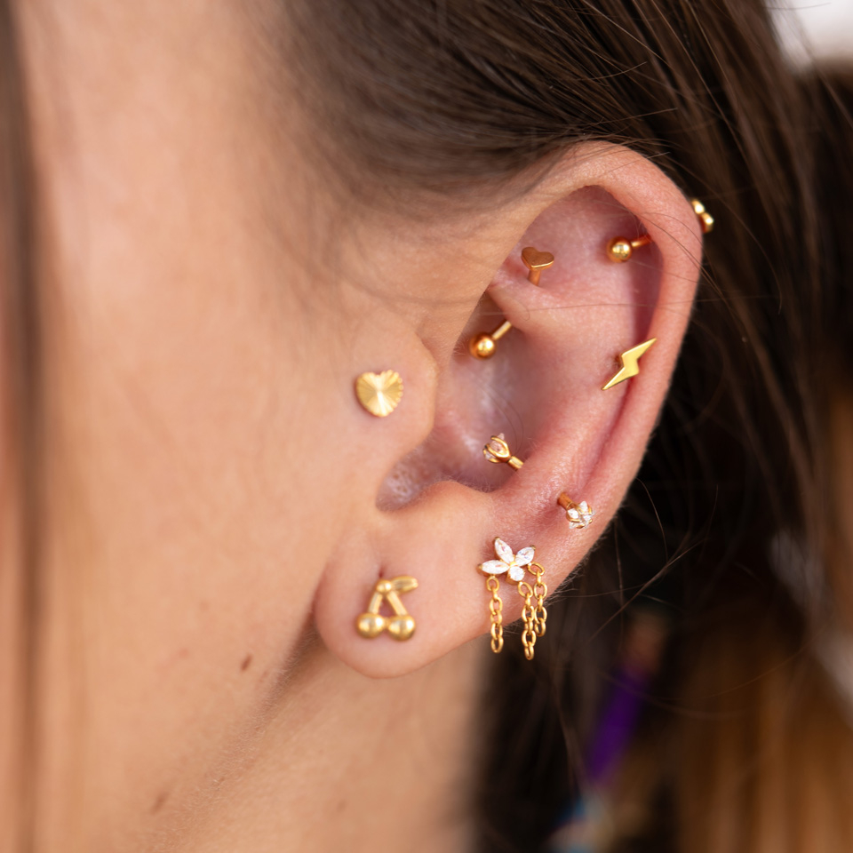 Tämä sähäkkä labret on muotoiltu salamaksi. Salama on kooltaan vain 8,4 mm pitkä ja 2,7 mm leveä, mikä tekee siitä sopivan pidettävän erilaisille korva- ja huulilävistyksille.