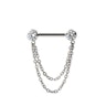 Tätä implanttitason titaanista valmistettua nännibarbellia koristavat kaksi tynnyri-istutettua zirkoniakiveä kummassakin päässä. Ainutlaatuiseen koruun kuuluu myös palloja yhdistävä titaaniketjupari, joka laskeutuu kauniisti nännin alapuolelle.