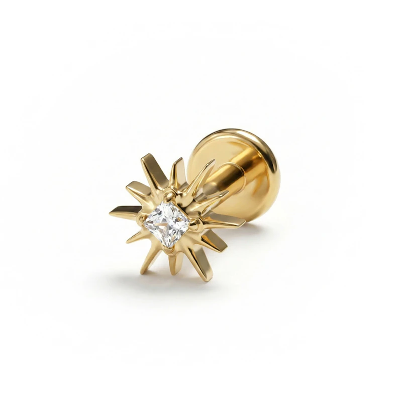 Tuo ripaus hehkua korvakorupinoosi tällä titaanisella auringonsäde-labretilla. Kukkamainen, valoa nappaava design tuo tyyliin hienovaraista syvyyttä, mutta pitää fiiliksen silti siistinä ja helposti käytettävänä joka ikinen päivä.