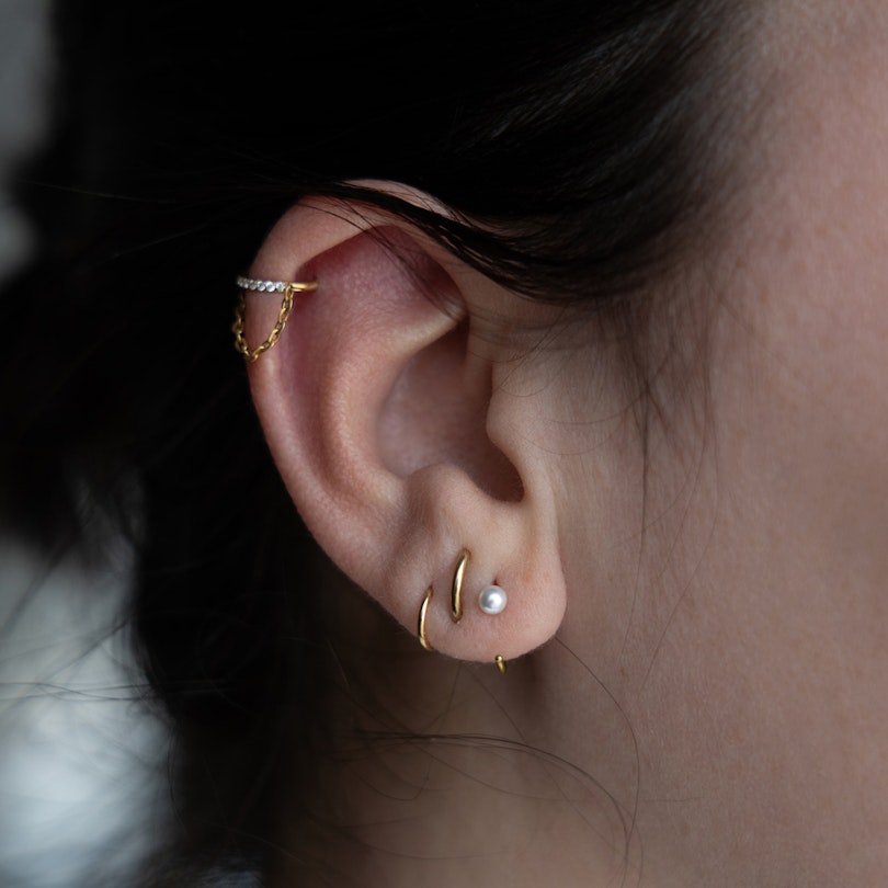 Tämä helmellä koristeltu titaaninen avoin rengas tuo helpon mukautuvuutta korviesi koruihin. Yksi helmi istuu kaaren päässä ja antaa sinulle pehmeämmän lookin ilman yliyrittämistä. Korun pitämiseksi sujauta avoin puoli korvalehden lävitse ja pyöräytä korua, kunnes suuntaa eteenpäin ja asettuu mukavasti paikoilleen. Voit pitää sitä korvalehden ylemmässä tai alemmassa osassa ja yhdistää sen muihin koruihin aina kun mielesi tekee vaihtelua.