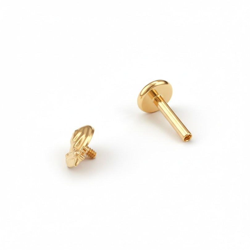 Titaanista valmistettu koru on hypoallergeeninen, vedenkestävä ja tarpeeksi luja jokapäiväiseen käyttöön. Sisäkierre tekee asentamisesta sujuvaa ja istuvuudesta varmaa, joten se pysyy juuri siellä missä pitää. Suunniteltu conch-, helix-, korvalehti- tai tragus-lävistyksiin, siinä on flatback-tausta, jonka avulla koru pysyy mukavana koko päivän.