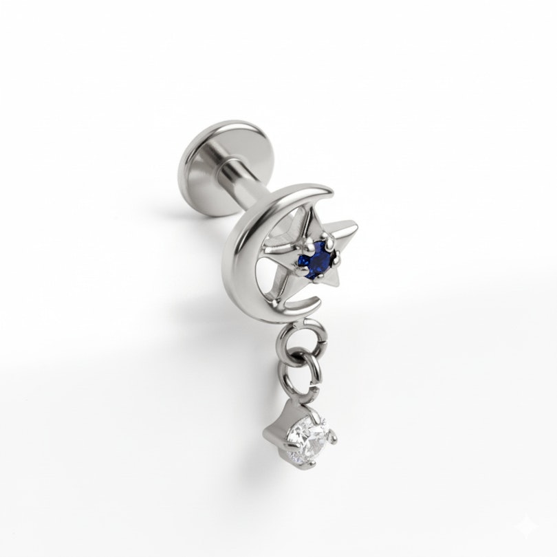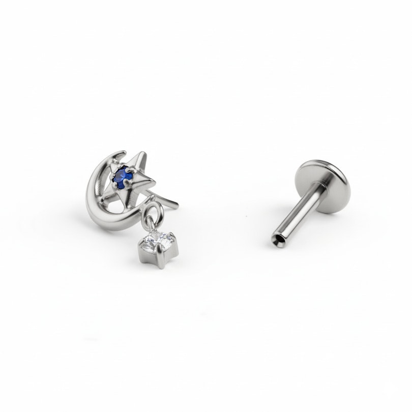 Titaanista valmistettu koru on hypoallergeeninen, vedenkestävä ja luja. Sisäkierre tekee asettelusta sujuvan ja istuvuudesta varman, jota koru pysyy juuri siellä missä pitää. Viimeistelty flatbackilla, tämä koru on tehty helix-, korvalehti- ja tragus-lävistyksille.