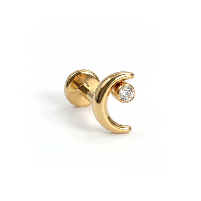 Titaanista valmistettu koru on hypoallergeeninen, vedenkestävä ja elinikäinen oikein hoidettuna. Sisäkierre tekee laittamisesta sujuvan ja istuvuudesta napakan. Flatback-muotoilun ansiosta korun käyttö on mukavaa joka päivä. Sopii conch-, helix-, korvalehti- tai tragus-lävistyksiin.