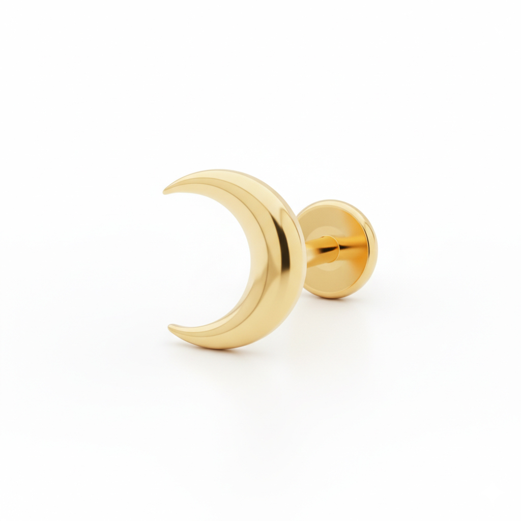 Tämä titaaninen kuunsirppilabret on tehty myöhäisiin öihin ja aikaisiin aamuihin, niihin hiljaisiin välitunteihin, jolloin kaikki tuntuu hieman henkilökohtaisemmalta. Se vastaa muodoltaan kuunsirppiä, on saatavilla kulta- ja hopeapäällysteisenä, ja pitää korupinosi hillittynä sekä tasapainoisena.