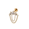 Tämä titaaninen labret korukivillä ja ketjuilla ei ujostele astua esiin. Viisi korukiveä kruunaa yläosan, jossa kolme markiisihiottua kiveä muodostaa kukan, jota kehystää kaksi pyöreää korukiveä. Kaksi siroa ketjua laskeutuvat niiden alle, tuoden liikettä ja asennetta samalla kerralla.