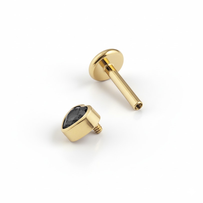 Titaanista valmistettu koru on hypoallergeeninen, vedenkestävä ja riittävän luja arkipäiväiseen käyttöön. Sisäkierre tekee laitosta sujuvaa ja istuvuudesta varmaa, joten koru pysyy juuri siellä missä pitää. Viimeistelty flatbackilla mukavaa arkikäyttöä varten.