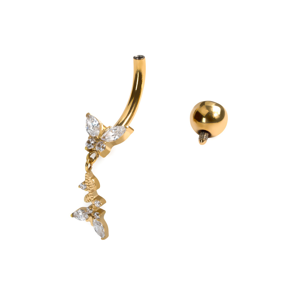 Tässä ihanassa titaanirenkaassa perhosilla on keskiössä perhonen sekä riipus, jonka korukivet näyttävät putoavilta lehdiltä. Titaanimateriaalinsa ansiosta se on vedenkestävä ja sopiva herkillekin ihotyypeille.