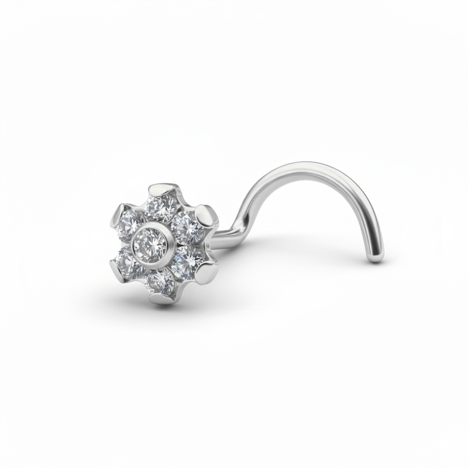 Titaaninen nenäkoru kukalla on pieni yksityiskohta, joka tuo pehmeyttä sierainlävistykseesi. Pikkuruinen, kruunuistutettu korukivi istuu kukan keskellä, joten tätä on helppo käyttää viikon jokaisena päivänä.