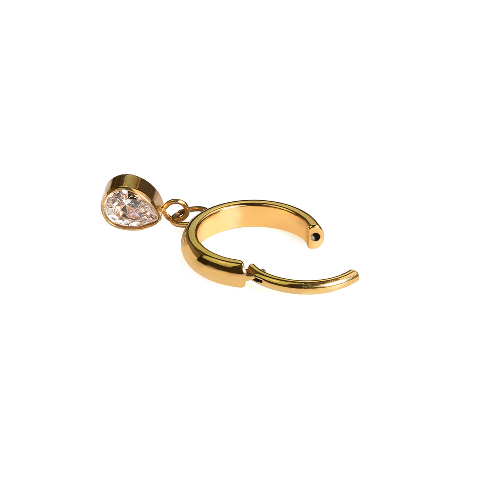 Korua kaunistaa pisaranmuotoinen, tynnyri-istutettu zirkoniakiviriipus, joka kiinnittyy renkaaseen kahden siron lenkin avulla. Pisaran koko on 4,5 mm.