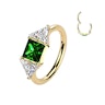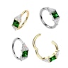 Tämä on se taso, jota lävistyksesi ei tiennyt tarvitsevansa. Tämä Bodymod Premium titaanirengas vihreällä korukivellä on todellinen statement sen rohkealla, neliöhiotulla keskiosalla, jota reunustavat kaksi terävää valkoista kolmionmuotoista korukiveä, jotka nappaavat valon missä tahansa kulmassa. Huoliteltua geometriaa väriläiskällä.