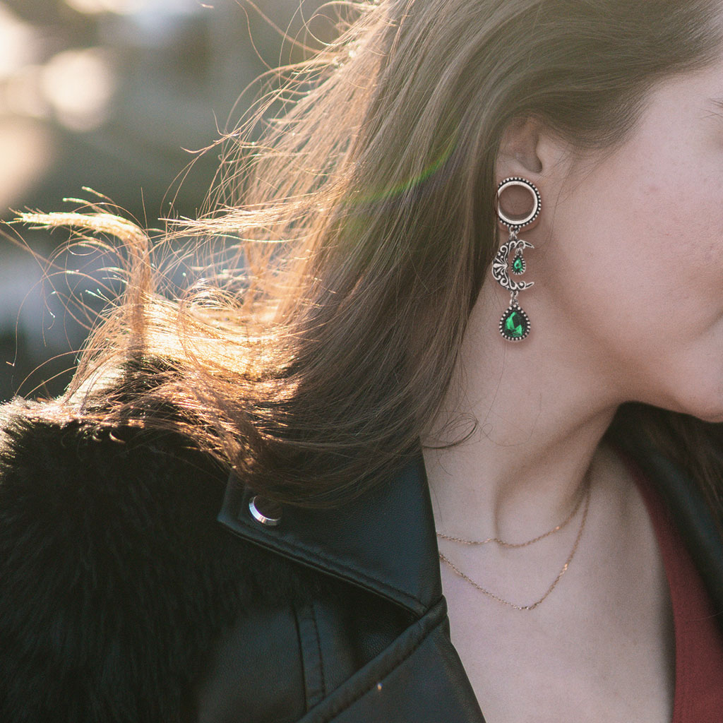 Tunneli filigraani kuulla ja vihreällä jalokiviriipuksella