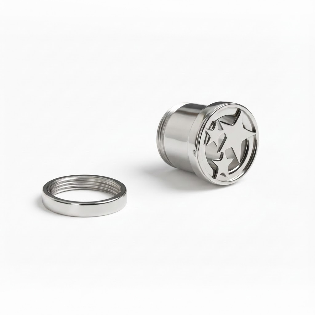 Tämä tunneli tähtitriolla tuo leikkisän twistin venytetyille korville. Kolme tähteä kimaltaa korun etupuolella ja antaa lookillesi rohkean, mutta rennon fiiliksen, joka sopii täydellisesti arkityyliisi.