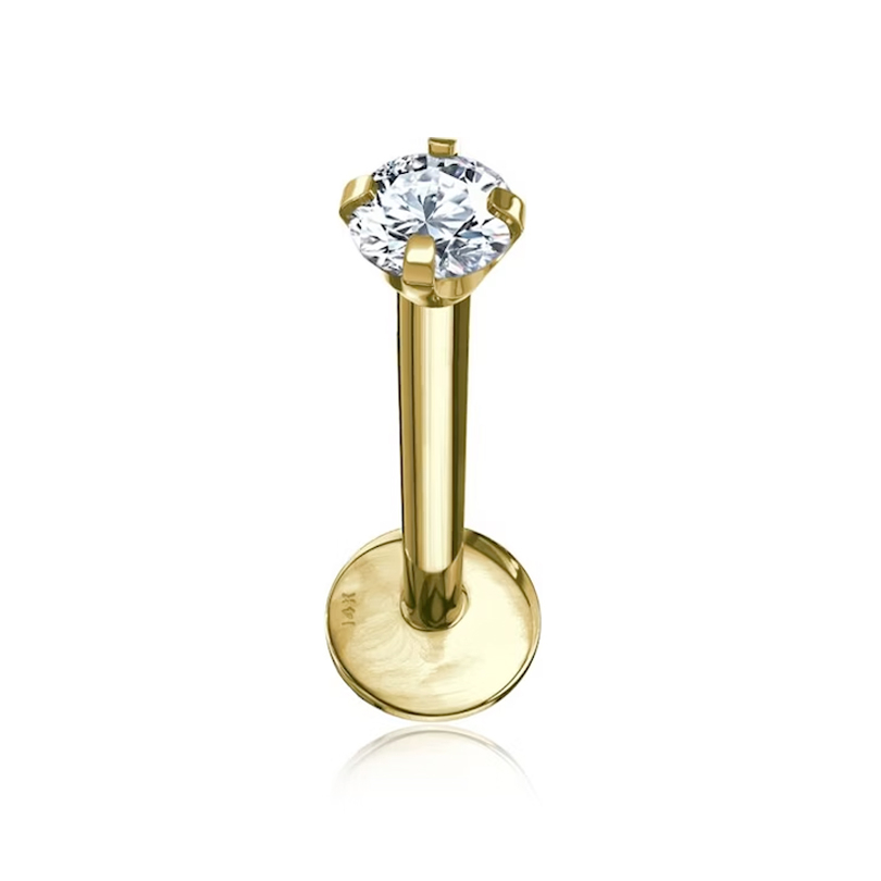 Labret 14K kullasta sisäkierteillä ja jalokivellä