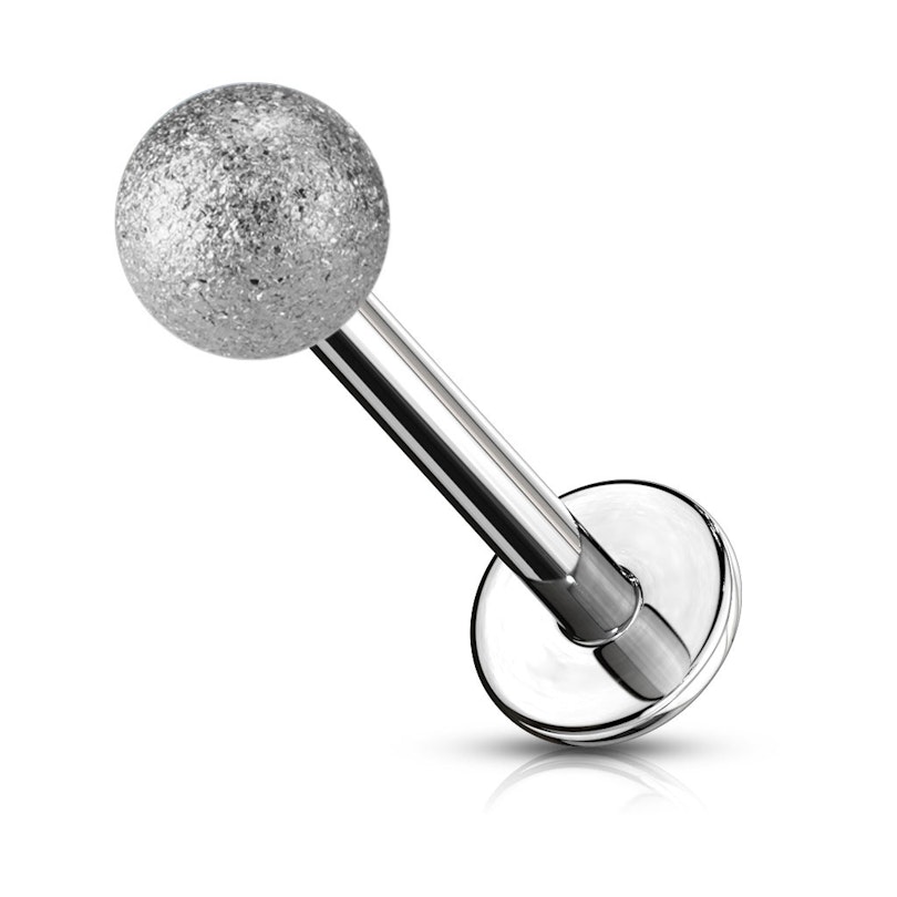 Labretin päätä koristaa kirurginteräksinen pallo, joka erottuu joukosta sen hiekkamaisen pinnan vuoksi. Pallon pinnoite antaa sille timanttimaisen ilmeen, joka kimaltelee kauniisti valossa.