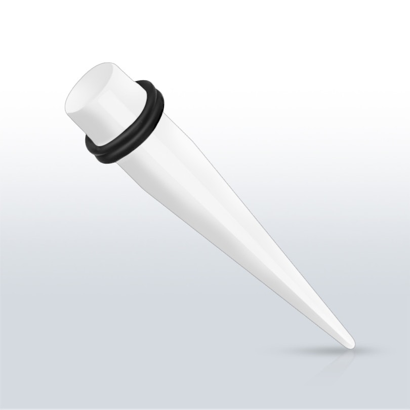 Kyseinen malli on valmistettu akryylistä. Huomioi, että kuvassa näkyy sekä läpinäkyviä sekä kiinteitä malleja. Ainoa ero näiden välillä, on se että läpinäkyvien mallien läpi näkee ja kiinteiden mallien läpi ei näe. Valitset itse oman värin sekä toivotun halkaisijan. Halkaisija, jonka valitset on venytyskorun suurin halkaisija eli toisin 8 millimetrin venytyskoru on paksuimmalta kohdaltaan 8 milimetriä.