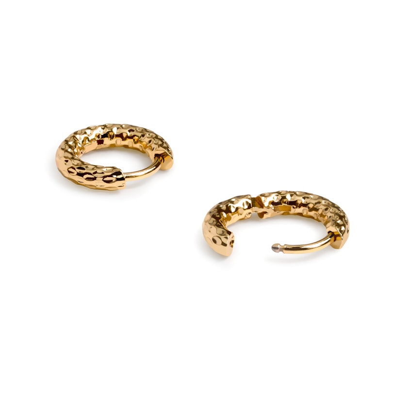Valmiina siirtymään uudelle tasolle? Nämä korvakorut vasaroidulla pinnoitteella ovat uusi vakiovalintasi. Ne ovat ideaalivalinta korvalehden lävistyksille, luoden tukevan pohjan lempokorvakoruistasi muodostuvalle korupinolle.